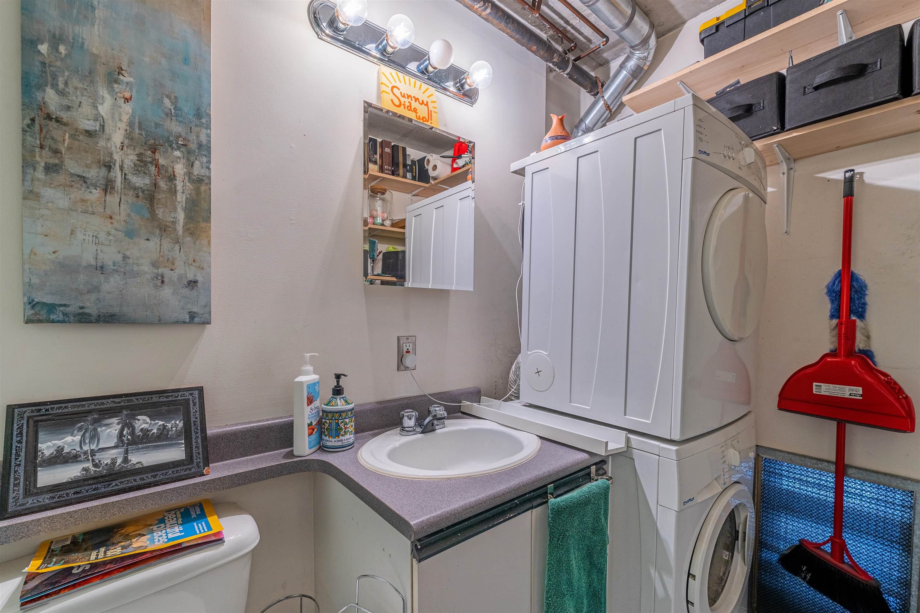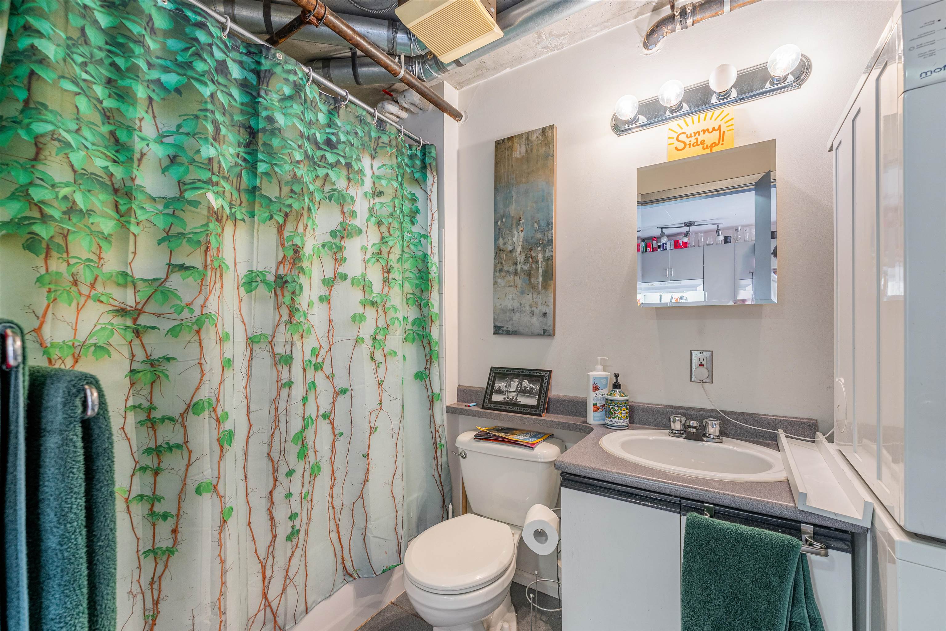 Welcome to your next home at the Watershed! A bright & spacious two-level industrial mix use loft. This home was previously used by a musician and has a professional built recording studio with full ventilation. Beautiful steel spiral staircase leading to bedroom, 1 parking stall, in-suite laundry and pet friendly. Prime location in the heart of Mount Pleasant. Close to transit & new Broadway sky train line & includes a shared roof top deck with amazing views of the North Shore. A dog walker & cyclists paradise-minutes away from The Seawall, many shops and trendy restaurants on Main St & Olympic Village, False Creek, Science World, Emily Carr university & EA headquarters. You don’t want to miss this one! GST applicable.