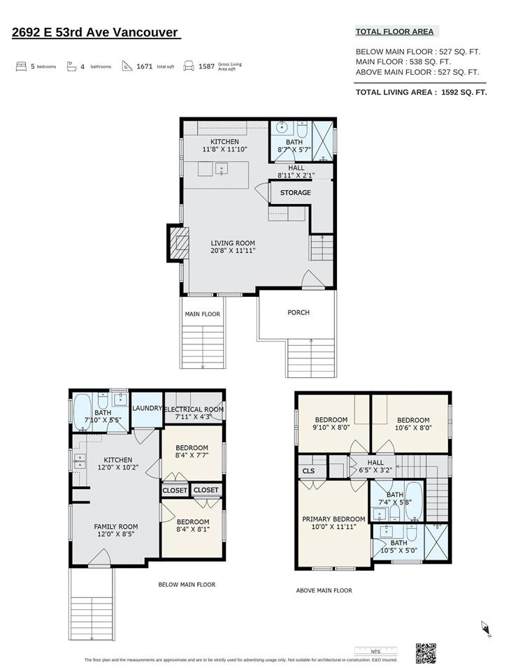 Step into this remarkable one of a kind Duplex residence built by Biring Bros Construction! This home offers an exceptional floor plan , an array of natural sunlight, high ceilings, and great curb appeal. This main floor offers an Impressive kitchen, stunning cabinetry, beautiful custom millwork, AC, radiant floor heating,& extra large storage room. Upstairs includes 3 spacious bedrooms with 2 full washrooms and ample closet spaces. Basement includes 2-bedroom spacious Legal Suite with separate laundry. Located in Prime Killarney this is walkable to both levels of schooling, Killarney Market, Champlain Square, Fraserview Golf course, parks, and trails, shops, daycare, many restaurants, and much more! Call today to view this remarkable home in one of Vancouver’s premier Neighborhoods.